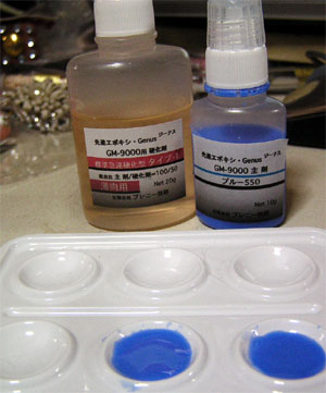 主剤3対硬化剤1の割合でパレットに流し込む。